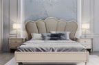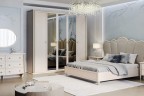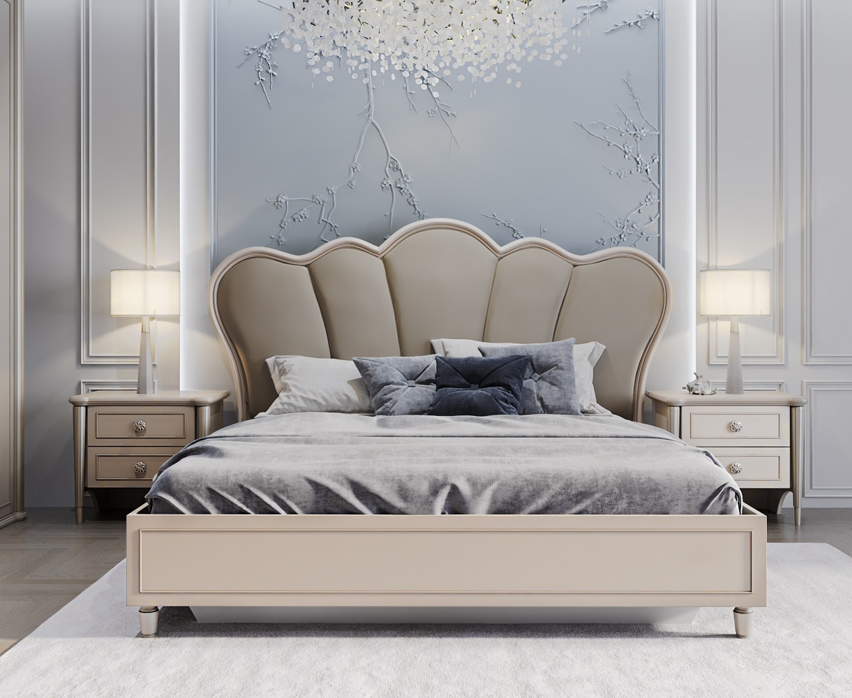 Изголовье: Изготавливается из цельной плиты ЛДСП с багетом из ППУ сатин шампань,в виде бутона цветка;