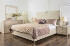 - Кровать с мягкой вставкой из мраморного жаккарда нежно серо-бежевого цвета